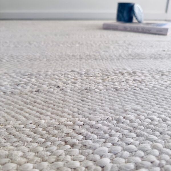 Designed in a clean white Scandinavian style, this textured rug brings a sense of calm, light, and timeless elegance to any living room — a modern classic that elevates your space with effortless sophistication.