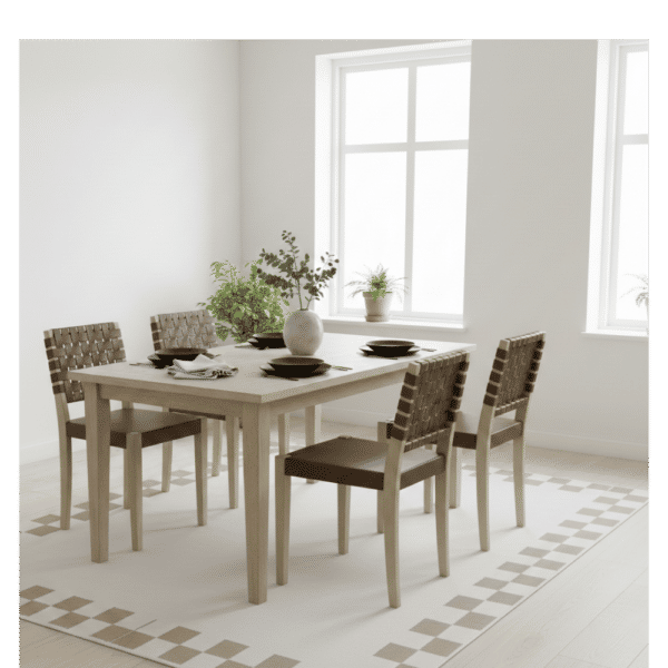 Designed to invite you to sit, linger, and savor every conversation, this handmade dining chair combines Scandinavian elegance with lasting comfort. Crafted from vegetable-tanned leather and natural wood, it is durable, easy to clean, and naturally beautiful. Available in light wood with beige leather, it measures 51 × 46 × 90 cm and weighs 5.8 kg.